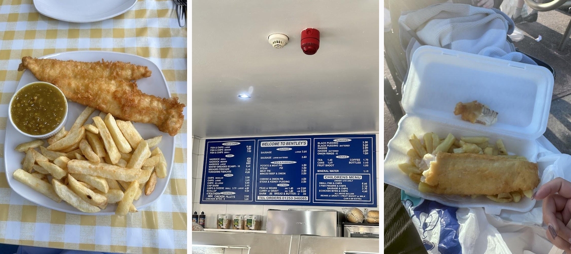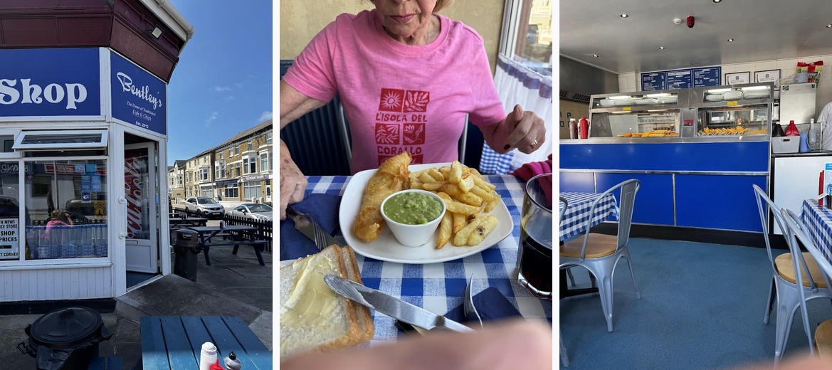 I drive six hours to reach Blackpool, and the thought of lunch at Bentley's spurs me on. A small fish 'n' chips, a scallop, mushy peas, curry sauce, and a slice of bread and butter. It's unrivalled! I always eat in. The restaurant is immaculate. The staff are welcoming. The whole experience is top-notch, year in, year out. 100% recommend.